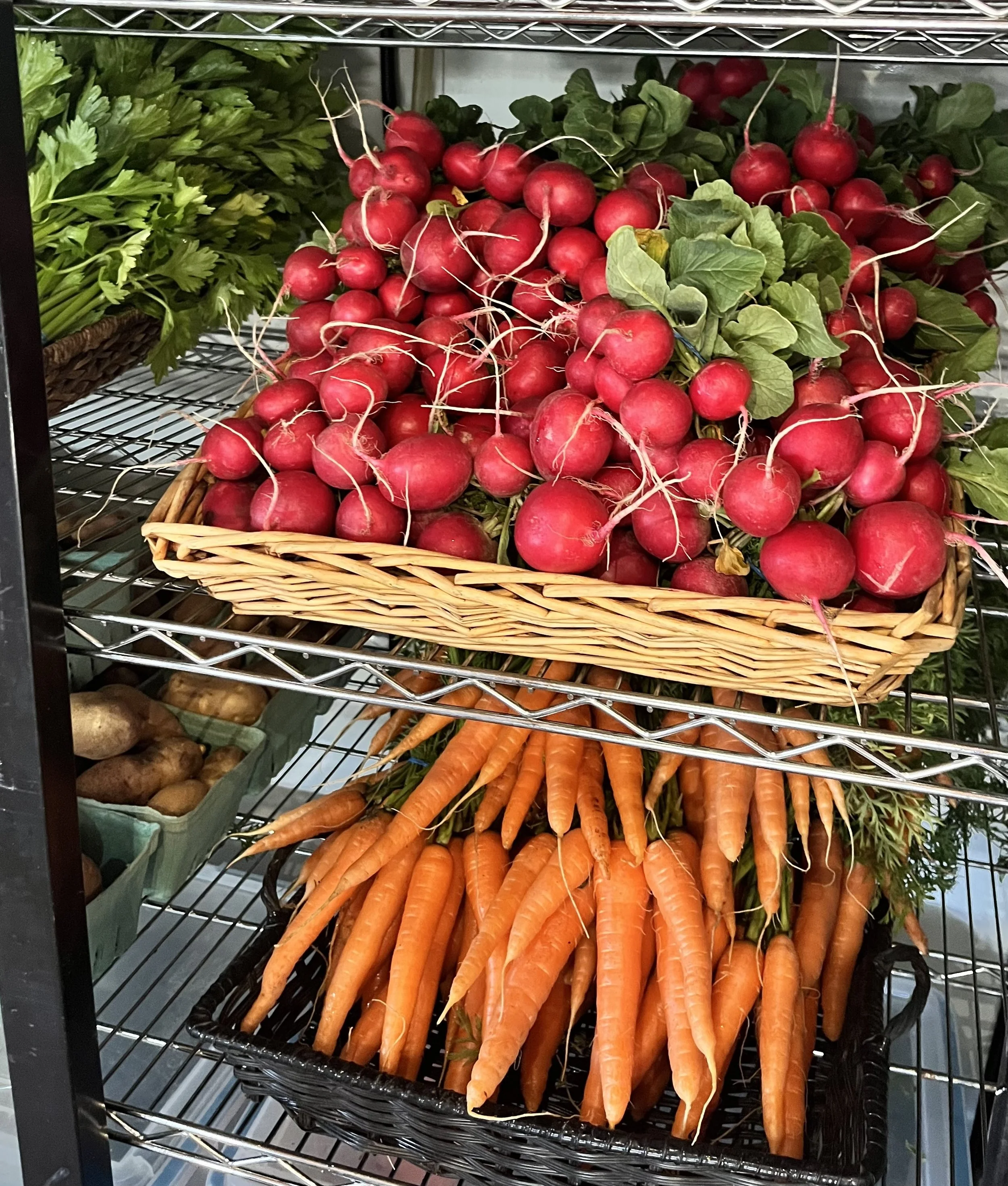 Pick up your share between 1–7pm every Wednesday. Our market-style pickup is simple and fast — grab your chosen items from the refrigerators or tables, bag them up, and you’re on your way.